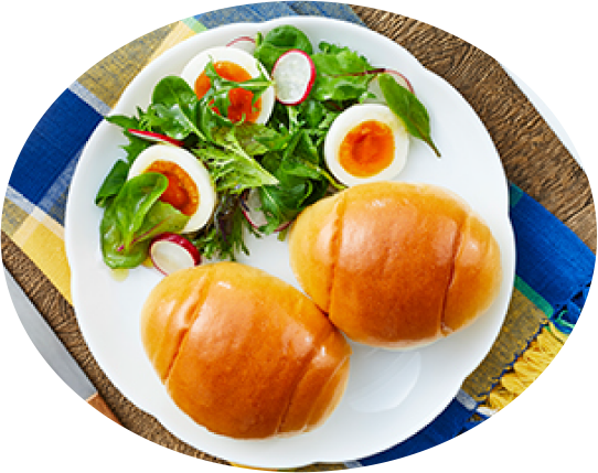湯捏ね生地を使用した、しっとり、ほんのり甘いロールパンです。