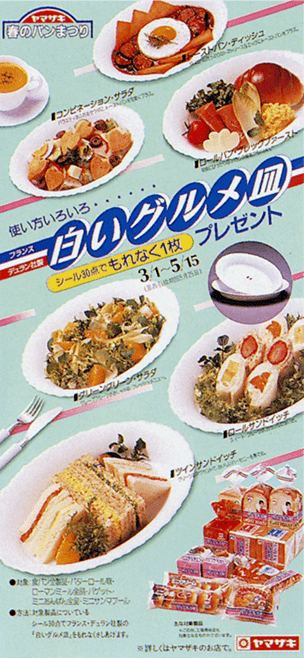 第2回となる1982年のキャンペーン名称は「フランスの香り≪デュラン社製≫白いお皿プレゼント」当時は”パンまつり”という名称もまだ定着していなかったことがわかります。キャッチコピーは「さらにフレッシュ!パリ気分」。