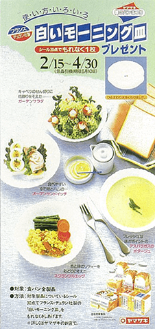 景品を「白いモーニング皿」と題したこの年の対象商品には、食パン、バラエティーブレッド、バターロール、パリジャン等の食事パンを選定。豊かな朝食を提案しました。