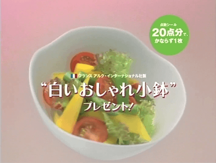 1991年は、楽しくヘルシーな食生活をつくるパン食をご提案。サラダにぴったりな八角形のサラダボウルでした。さらにこの年は白いお皿の交換枚数が、累計1億枚を突破した記念の年でした。