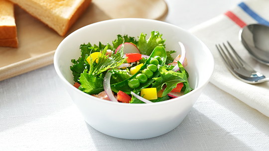 パンと一緒に野菜や果物も食べていただきたいとの思いから、サラダやフルーツの盛り付けに最適な小鉢タイプを選定。