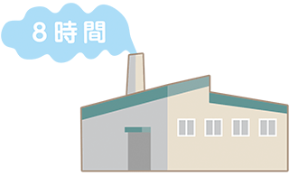 生地づくりから発酵、分割、成形、焼成までのパンづくりにかかる時間は、パンの種類や製法によっても異なりますが、ヤマザキでは食パンで約8時間、菓子パンで約5時間かかります。(「ヤマザキの工場見学」を参照)
