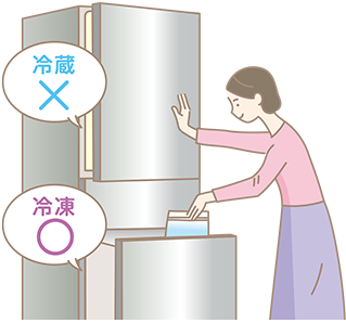 パンのおいしさを味わうには、消費期限内に食べきることが大原則です。しかし、どうしても余ってしまいそうな時は、冷蔵室ではなく、冷凍室での保存がオススメです。冷凍室へ入れる前には、消費期限内であることを確認することもお忘れなく。 ( おいしい!パン食生活!」LESSON2を参照)