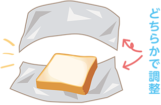 上下両火のオーブントースターにありがちなのが、火のまわりが均等ではなく、どちらかが焦げやすいといった"くせ"。下火が強すぎるときにはパンの下にアルミホイルを敷き、上火が強すぎるときにはパンの上にアルミをふわっとかぶせて焼くと、焦げずにうまく焼けます。
