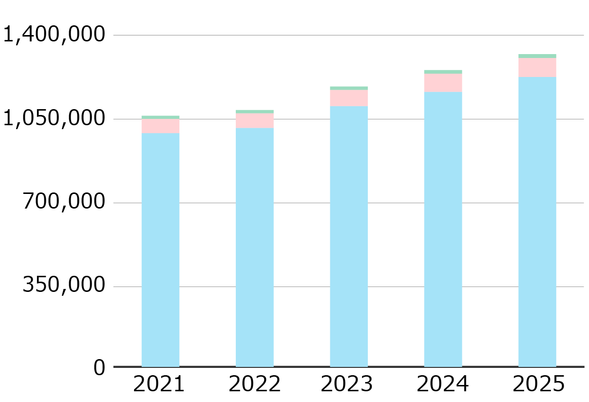 | 合計 | ¥1,052,972 | ¥1,077,009 | ¥1,175,562 | ¥1,244,488 | ¥1,311,430 |