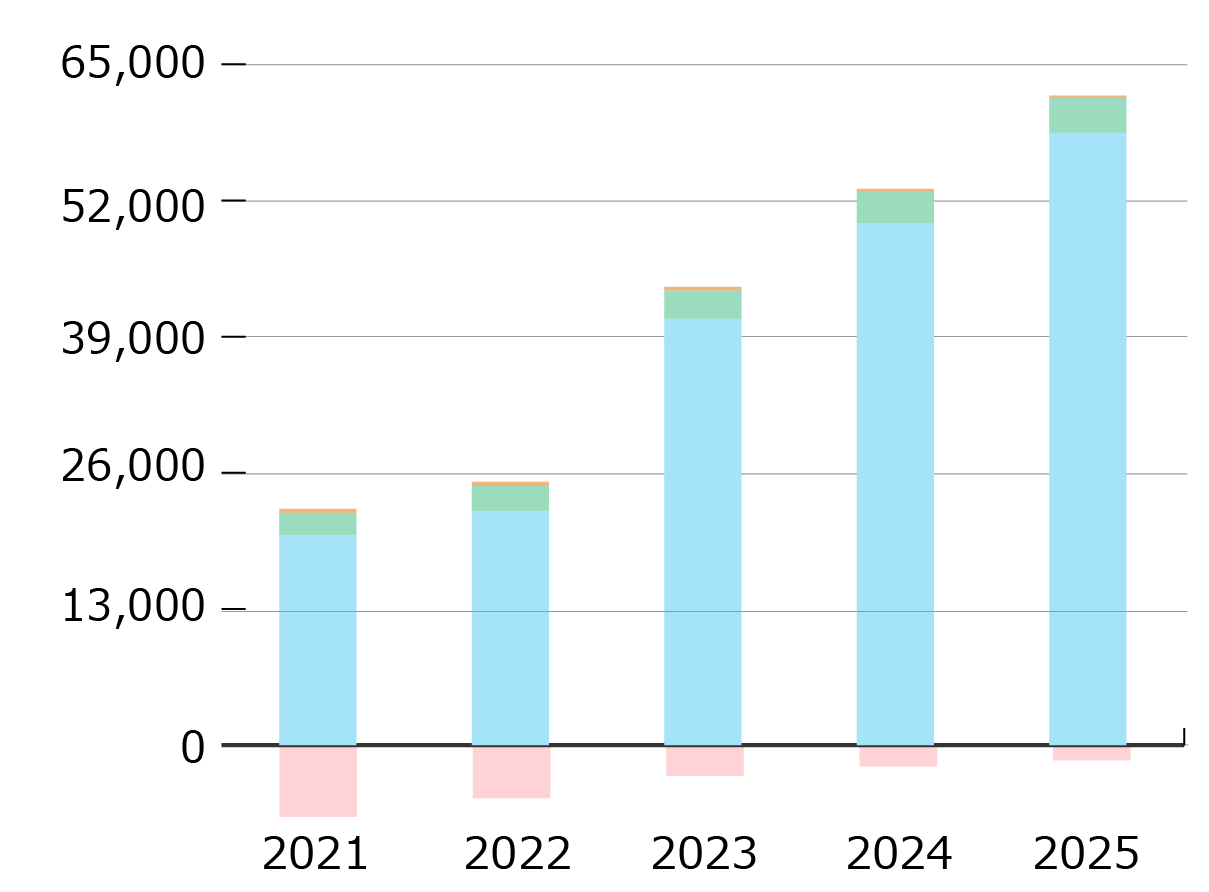 | 合計 | ¥18,359 | ¥22,032 | ¥41,962 | ¥51,873 | ¥61,141 |
