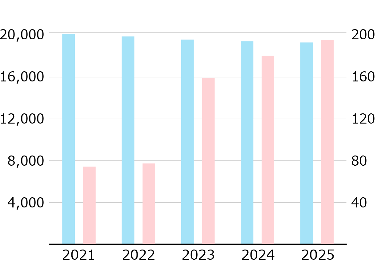 | 従業員数(人) | 19,985 | 19,750 | 19,446 | 19,291 | 19,175 |