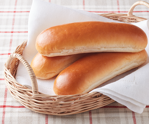 お好みの具材をいろいろはさんで楽しめる、ふっくらと焼き上げたほんのり甘いロールパンです。ホットドッグにぴったりです。