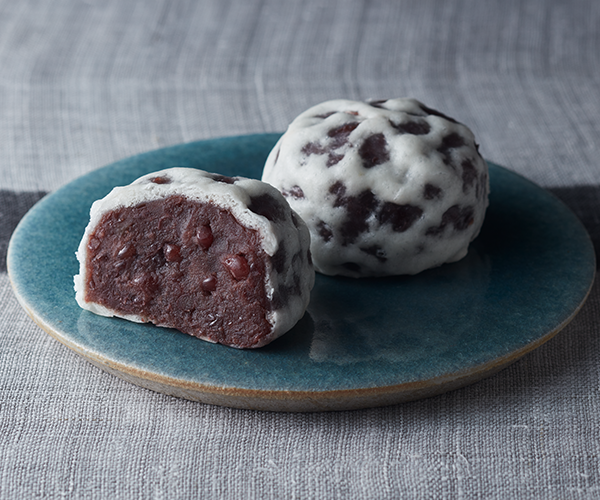 やまいもを練り込んだ生地で風味豊かな粒あんを包み蒸し上げました。粒あんをうっすらと包み、吹雪状に仕上げています。