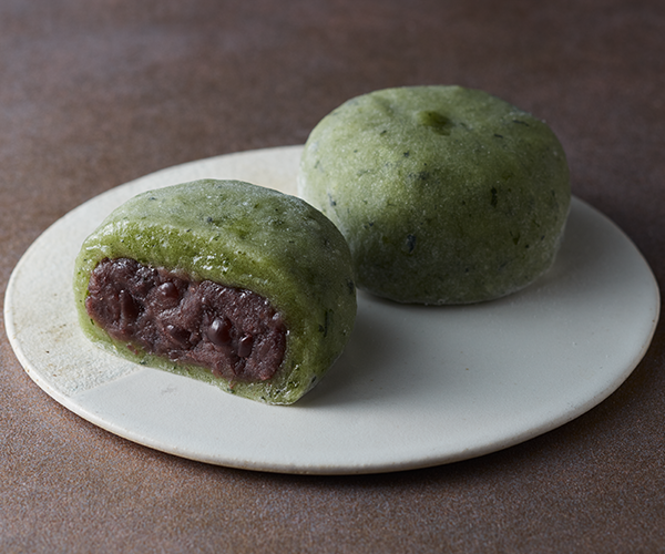 よもぎを入れた餅生地で、粒あんをたっぷり包みました。風味豊かでやわらかな生地と自家製粒あんのおいしさをお楽しみいただけます。
