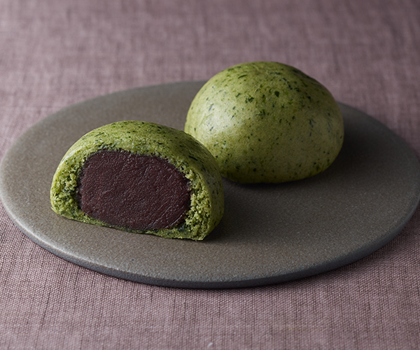 よもぎを練り込んだ生地でこしあんを包んで蒸し上げました。ふっくらとした生地と自家製こしあんのおいしさをお楽しみいただけます。