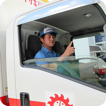 定時・定量納品と、何より安全運転を心掛け、販売店様へ製品をお届けします。