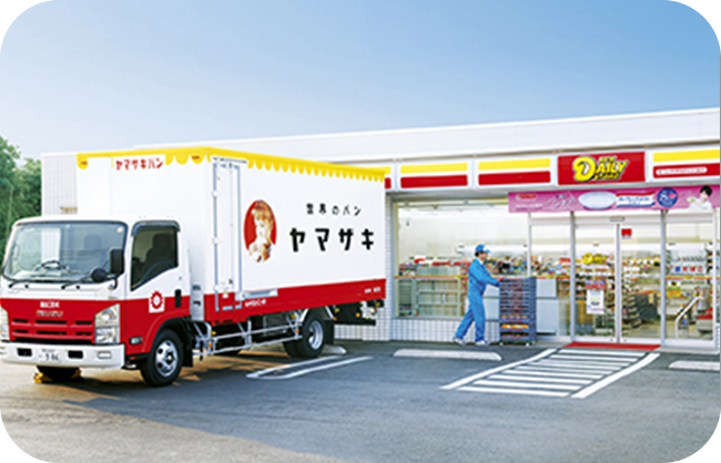 ヤマザキでは、毎日新鮮なおいしさをお客様にお届けするため、工場から販売店へ直接配送する自社物流システムがあります。ルートセールスドライバーは、その自社物流の主役であり、製品を販売店へ配送する仕事を担当します。