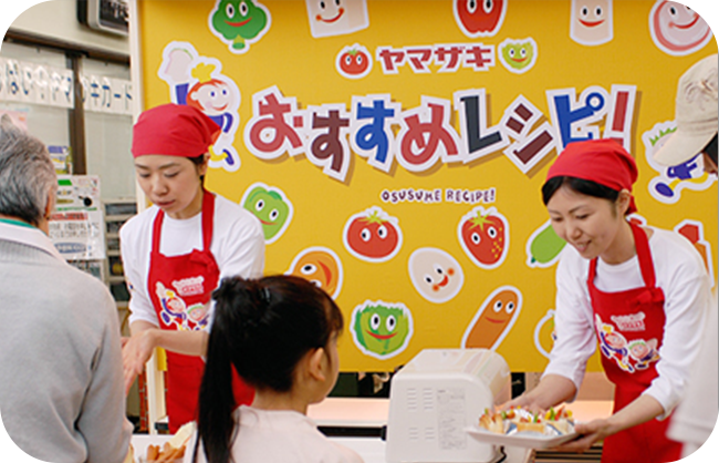 販売店を巡回し、試食販売や販売指導、栄養バランスを考えたメニュー提案で食育活動などを行っています。