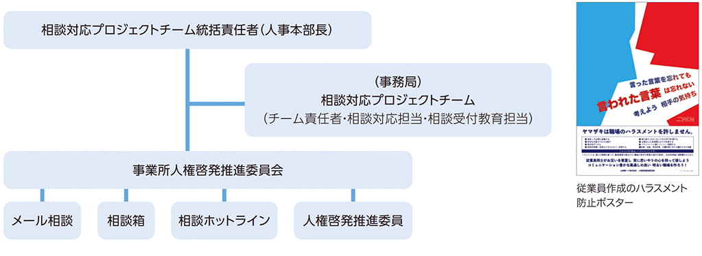 当社では、本社および各工場に「人権啓発推進委員会」を設置し、人権啓発活動に取り組むとともに、相談の窓口としています。