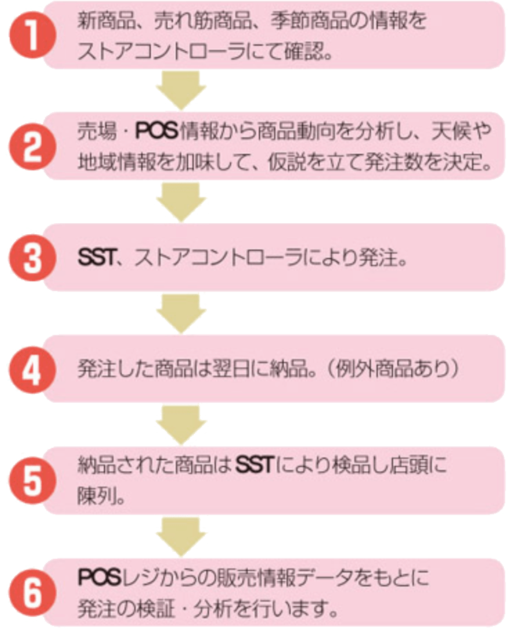 新商品情報、個々の商品の売れ行きから天候の情報などお店を経営するために必要な多くの情報を管理、処理するコンピュータネットワークシステムを構築。効率的な物流ネットワークと併せて、お店の効率化をバックアップします。