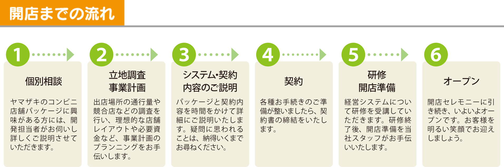 開店前研修として、店舗のマネジメントとオペレーションを、理論研修と店舗実習で効率よく学んでいただきます。 また、加盟店様対象の総合展示会を、関東・関西・九州の各会場で開催しています。この展示会では、山崎製パンの新たな取り組み、新商品の展示・試食や販売促進のアイデアの提供、コンピュータを使った売上アップのための品揃え・発注の実演などを行います。情報収集の場であり、経営に役立つ研修の場でもあります。なお毎月の商品・販売情報の収集に役立つ「デイリーチャレンジ」を毎月お届けしています。