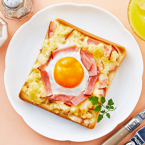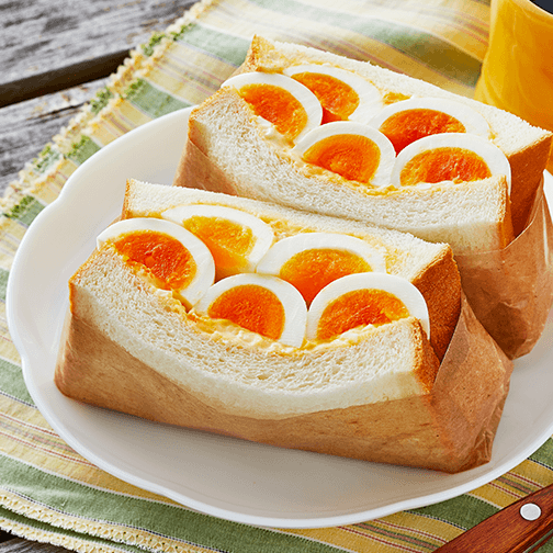白いモーニング皿は、ちょうどサンドイッチ一人前がきれいに盛り付けられるジャストサイズ。使い方いろいろ、モーニング皿に盛りつけられる朝食メニューで、豊かな朝食をご提案しました。