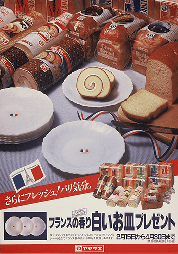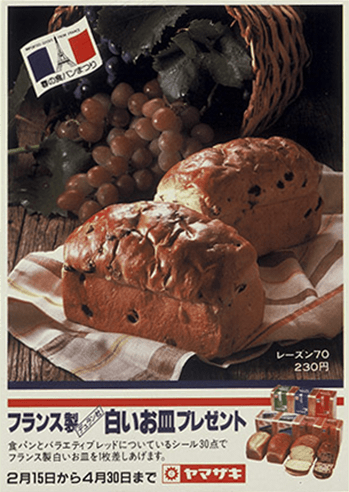 第2回となる1982年のキャンペーン名称は「フランスの香り≪デュラン社製≫白いお皿プレゼント」当時は”パンまつり”という名称もまだ定着していなかったことがわかります。キャッチコピーは「さらにフレッシュ!パリ気分」。