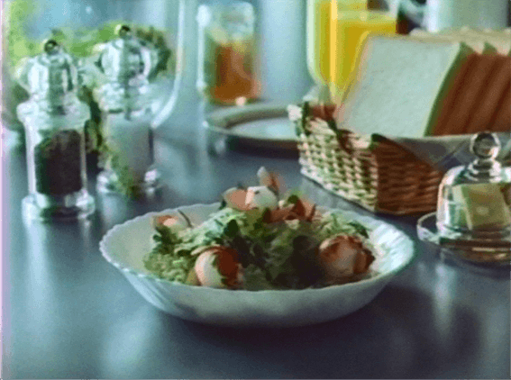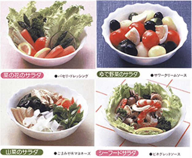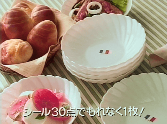 1991年は、楽しくヘルシーな食生活をつくるパン食をご提案。サラダにぴったりな八角形のサラダボウルでした。さらにこの年は白いお皿の交換枚数が、累計1億枚を突破した記念の年でした。