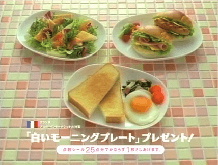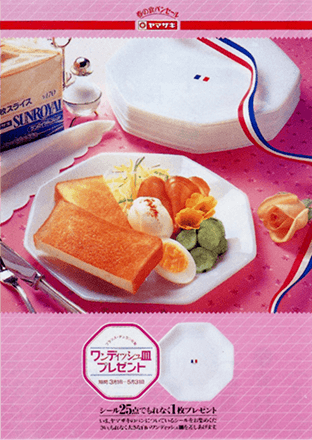 景品を「白いモーニング皿」と題したこの年の対象商品には、食パン、バラエティーブレッド、バターロール、パリジャン等の食事パンを選定。豊かな朝食を提案しました。