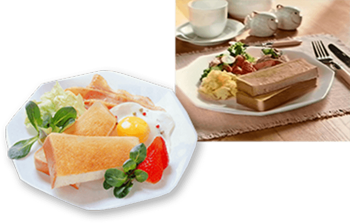 大きなお皿の上にパンといろいろな料理を組み合わせる”ワンディッシュ皿”として新しいスタイルの朝食を提案しました。