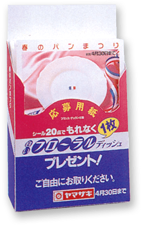 第1回は、1981年「春の食パンまつり」として実施。現在では、対象商品約500品ほどにまで広がっているパンまつりですが、当時は「食パン」のみでした。景品にはパン食文化の本場であるフランスのデュラン社製(現在はアルク・フランス社)の白いお皿を採用。清潔感とスマートさにあふれた、大変おしゃれなお皿としてご好評いただき、以降、継続してフランス製の“白いお皿”を景品としています。