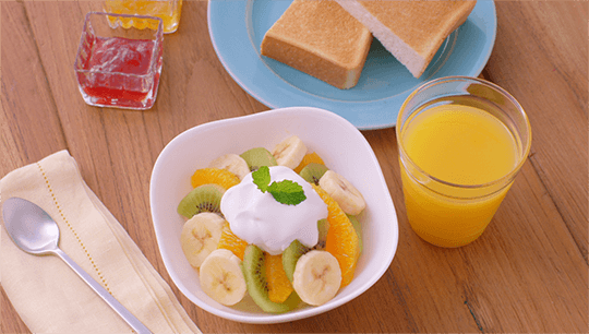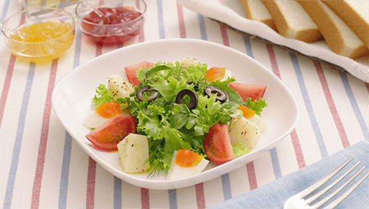 パンと一緒に野菜や果物も食べていただきたいとの思いから、サラダやフルーツの盛り付けに最適な小鉢タイプを選定。