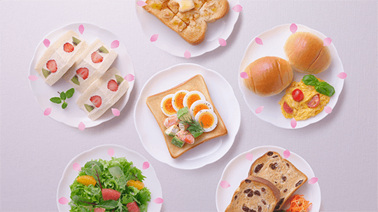 メインディッシュでもサイドメニューでも使いやすい丁度いいサイズ。「おいしい春を、のせましょう」のキャッチコピーにあわせ、 TVCMでは春色カラーのサンドイッチをご提案しました。