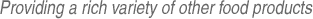 In addition to breads, Japanese- and Western-style confectionery, processed bread and prepared rice , Yamazaki Baking delivers an abundant variety of other food product lines to its customers' tables.