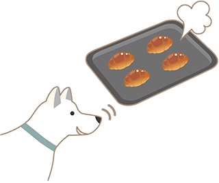 パンの主な香りは、焼成によって生じるこうばしい香りとパン生地が発酵することによって生じる、発酵食品特有の微妙で複雑な香りです。さらに、これらに小麦や砂糖、バター、マーガリンなどの原料に由来する香りが加わり、オーケストラのハーモニーのように好ましい香りをつくりあげています。