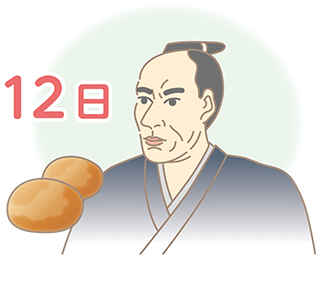 日本人ではじめて本格的にパン製造を行ったのは、伊豆韮山の代官であり、軍学者でもあった江川太郎左衛門です。江川太郎左衛門の師に当たる高島秋帆の従者に、長崎のオランダ屋敷に料理方として勤め、製パン技術を覚えた作太郎という人がいました。そこで、作太郎を伊豆韮山の江川太郎左衛門宅に呼び寄せ、パン焼き窯を作り、1842年4月12日、記念すべき「兵糧パン」第1号が焼き上げられました。この兵糧パンはまあまあの評判を得て、その後、大規模な製パン所で、大量のパンが作られるようになったのです。また、水戸や薩摩でも、同じようなパンが作られるようになりました。 4月12日が、いわば日本のパン発祥の日であることから「パンの記念日」とし、そして毎月12日を「パンの日」として全国のパン屋さんがより一層のサービスに努めることを、パン食普及協議会が1982年に定めました。パンの日に限らず、パン食をいっそう普及させるためにパン食普及協議会が活動しています。