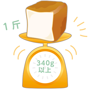 食パンは1斤2斤と数えます。"斤"というのは、古代中国の時代から使われている重量の単位です。今では重量を表す単位ではなく、単に食パンの数量を表す単位として使われていますが、平成12年に制定された「包装食パンの表示に関する公正競争規約」では、パン1斤は340g以上とすることが明示されています。