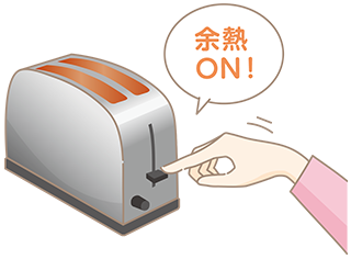表面はサクッ、中はふわっとモチモチ。これがトーストの醍醐味。そんな理想的な焼き上がりをめざすには、とにかく短時間で一気に焼くことがポイント。ポップアップトースターでもオーブントースターでも、パンを入れる2~3分前にあらかじめスイッチを入れ、庫内を温めておきます。トースターが冷たいまま、いきなりパンを入れると、温度がじわじわと上がっていく間にパンの水分が飛んでしまうので、おいしく焼けません。