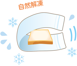 冷凍した食パンを解凍する場合、水分が出てベタついたり、表面が乾いてしまうことを防ぐために、ビニール袋から出したらきれいな布でくるみ、自然解凍させます。室温では約1~2時間で解凍できますが、朝食に食べる場合は、前日の晩に冷凍室から出しておくとよいでしょう。