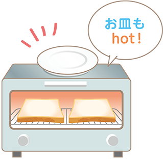 また、せっかく焼きたてのパンも、冷たいお皿に載せたのでは、すぐに冷えてしまううえ、パンとお皿の間に蒸気が溜まってサクッとした食感が失われてしまいます。オーブントースターでパンを焼くなら、トースターの上にお皿を載せておきましょう。こうすれば、パンが焼き上がったときには、お皿もいい具合に温まります。また、焼き上がったパンが蒸れるのを防ぐには、乾いたナプキンを敷いたカゴに入れるなど、通気性のよいところへ置くのもポイントです。