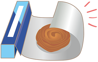 層状の生地が特徴のデニッシュペストリーやクロワッサン、油を使った揚げパンなどは、再加熱すると焦げやすいもの。オーブントースターを使うときは、パンに直接熱があたらないようアルミホイルでくるんで焼くと、上手に温めることができます。ただし、ぴっちりくるむと蒸れやすくなるので、空気の逃げ道をつくるようにゆるく包むのがコツです。