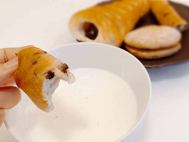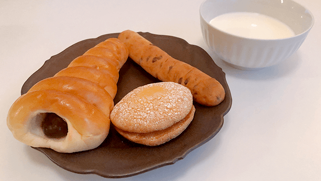 他のパンに比べてコクのある甘みが特徴ですが、牛乳と食べ合わせることで、乳製品ならではのコクを共有しながら、甘みはスッキリと流してくれます。