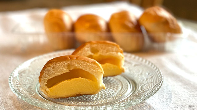 パンの部分はまだふっくら感があり、ひんやりクリームと相まって、もっちりとした食感に。