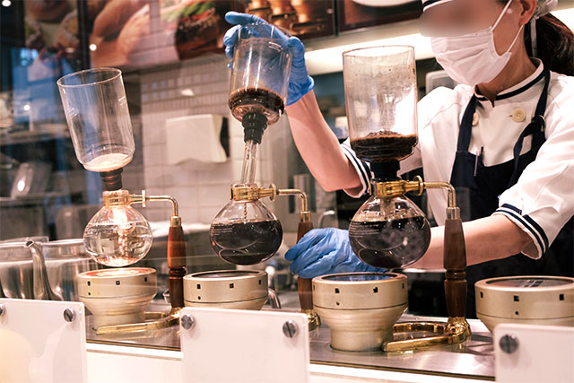 そんな「サイフォンコーヒー」が、駅近くや駅ナカで焼きたてパンを提供するベーカリーカフェ「ヴィ・ド・フランス」で、気軽に飲むことができるのをご存知でしたか?(※一部取扱いのない店舗がございます)