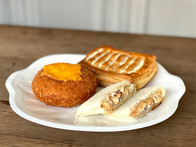 リベイクすると表面の衣がさらにサクサクになる「カレーパン」は、やや甘口に仕上げた自社製カレーと、チェダーのコクが相性抜群で、満足感も言うことなしです。ぜひ牛乳と合わせて、濃厚な組み合わせを楽しみましょう!