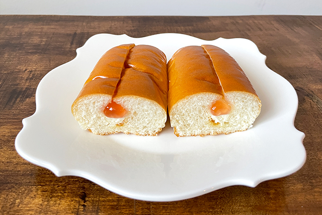 一方、「コッペパン(ジャム&マーガリン)」や、「コッペパン(つぶあん&マーガリン)」「コッペパン(ピーナッツクリーム)」などはすべて、パンの側面に切り込みを入れて具をサンドしています。