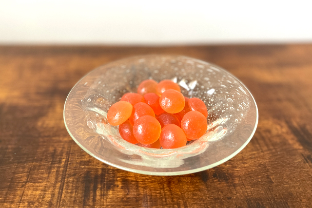 現在はチェリーを型取ったあんず風味のゼリーですが、昔はシロップ漬けの本物のチェリーを使用していました。