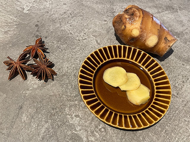 8つの突起を持つ星型で「八角」とも呼ばれる「スターアニス」は、苦味と辛味を持つ独特な甘い風味。交感神経を刺激し血行を促し、体内の代謝や消化吸収を高める作用があります。「ジンジャー(生姜)」は、ショウガオールやジンゲロールという辛味成分が含まれているため、血行促進や発汗促進をサポート。