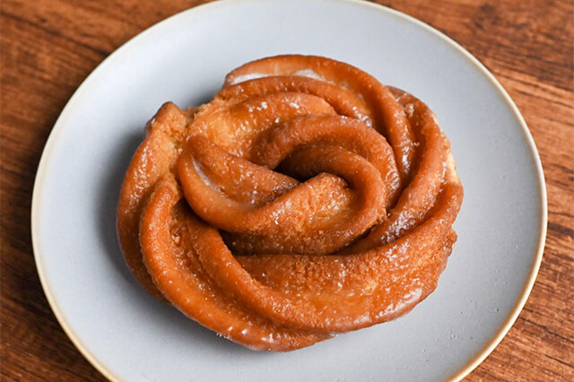 「ローズネットクッキー」は生地をフライヤーで揚げた後、最後のひと工夫があります。それが、表面のコーティング。生地にアイシングを薄くまぶすことで、砂糖のシャリシャリとした食感が加わり、よりおいしく仕上がります。このようにして、人気の食感が誕生しました。