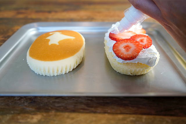 - 2. ホイップクリームとカットしたいちごを挟む。