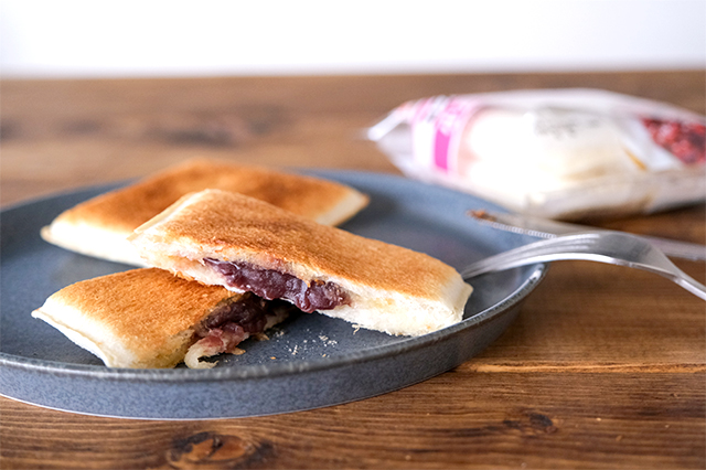 あんこは、冷蔵庫に常備されている日常的な食材ではないかもしれませんが、「ランチパック(小倉&マーガリン)」をリベイクすれば、小倉トースト”風”ホットサンドが手軽に楽しめます。