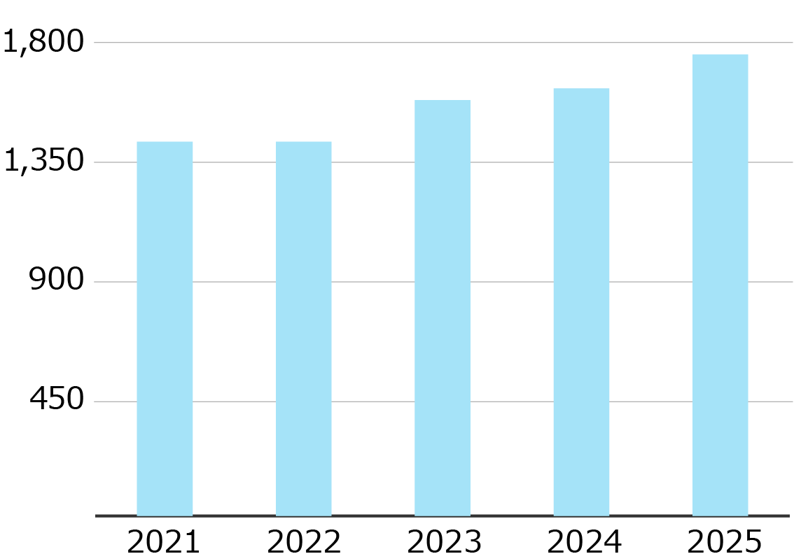 | 1株当たり純資産(円) | 1,413.35 | 1,443.86 | 1,570.53 | 1,614.89 | 1,742.61 |