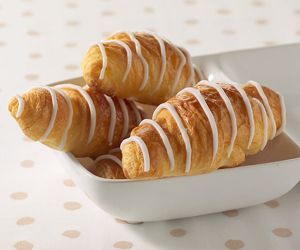 サクッと軽い食感のクロワッサンに、ストライプ状にシュガーをトッピングしました。上質な素材をいかしたシンプルなあじわいながら、後を引くおいしさが自慢。ティータイムに合う、スイーツのような菓子パンです。