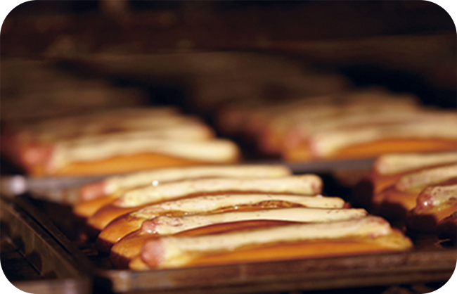 かたちづくった生地をオーブンに入れて焼き上げます。パンの種類によって焼き上げの温度はさまざま。絶妙な温度調節を行い、おいしそうな焼き色をつけていきます。